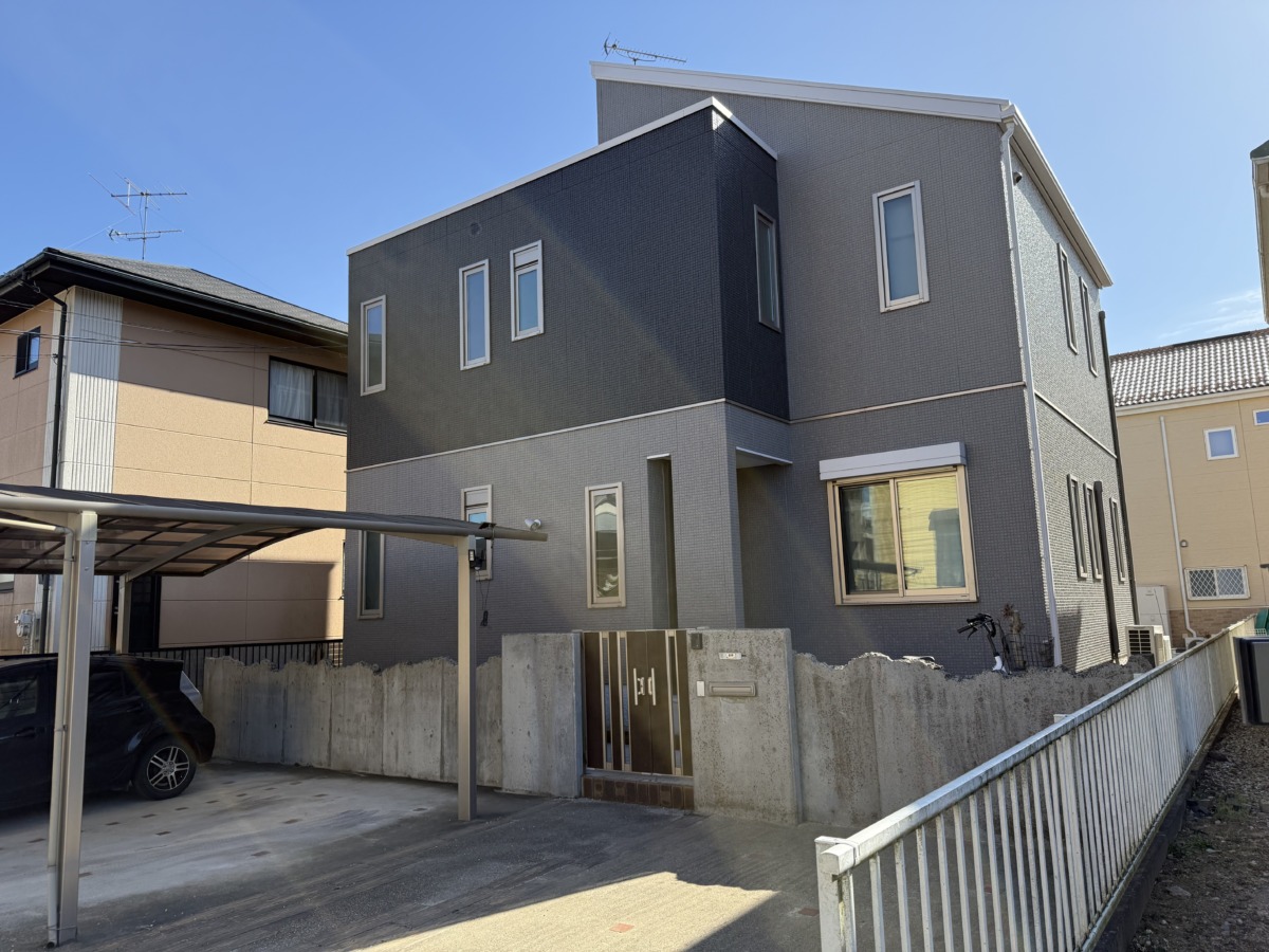 外壁のカラーを今風にカラーチェンジ ハウスメーカーっぽい配色で 一気に新築感のある仕上がりになりました。 塗装だけでここまで雰囲気が変わるのは 当社のカラーコーディネーターのセンスの良さです!