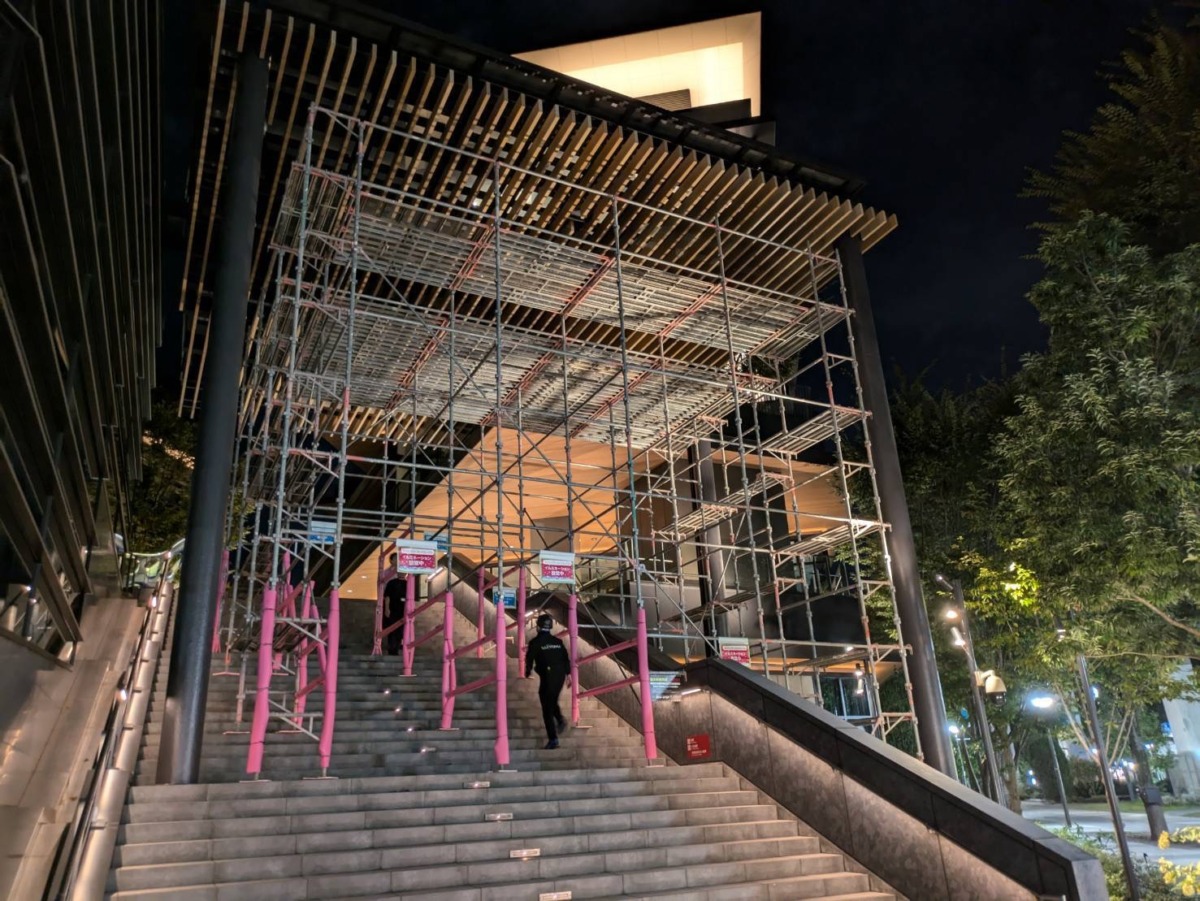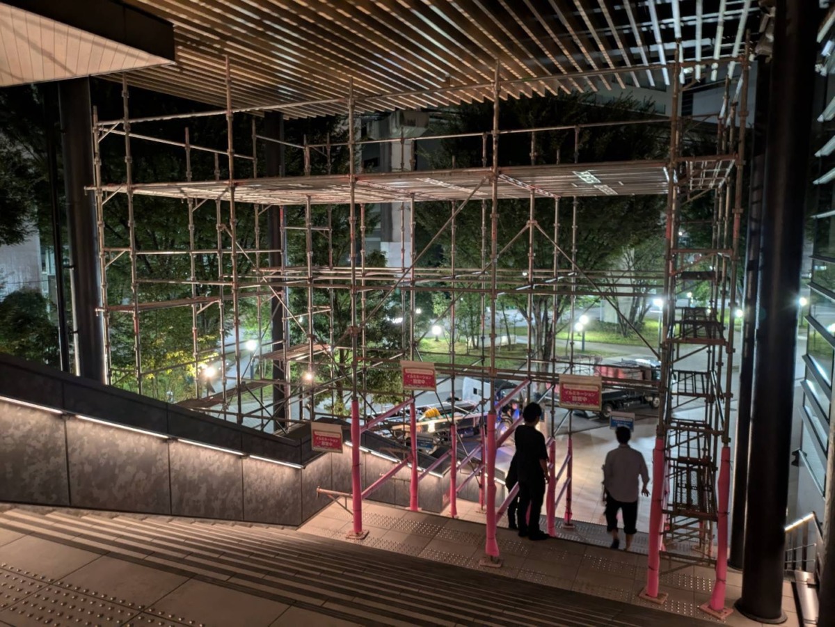 立川駅前商業施設の足場を夜間工事にて施工させていただきました。